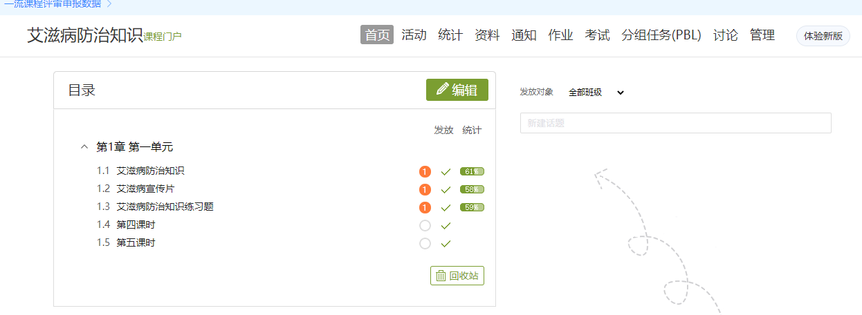 制作防艾知识宣传展板,同时在学习通平台开设一门《艾滋病防治知识》课程,让学生了解什么是艾滋病?如何防治?上传相关艾滋病宣传短片等。
