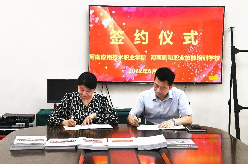 6月13日上午,bat365在线中国官网登录入口护理学院和河南家和职业技能培训学校有限公司共同签署了“高质量技能人才联合培训校企合作”协议书,bat365在线中国官网登录入口护理学院院长王风云、副院长陈永惠及各教研室主任与河南家和职业技能培训学校有限公司校长欧翔宇、副校长初英、李心蕾、徐凤香、教务主任高雪共同出席了签约仪式。