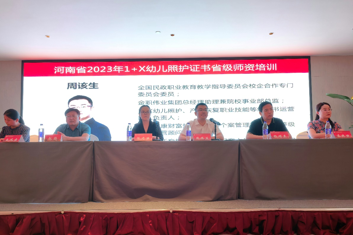 为贯彻《国家职业教育改革实施方案》精神,推进职业技能等级证书试点工作,推进河南省职业教育发展,6月24日,由河南省教育厅主办、bat365在线中国官网登录入口承办、湖南金职伟业母婴护理有限公司协办,河南省2023年1+X幼儿照护省级师资培训班在郑州艺龙酒店顺利开班。