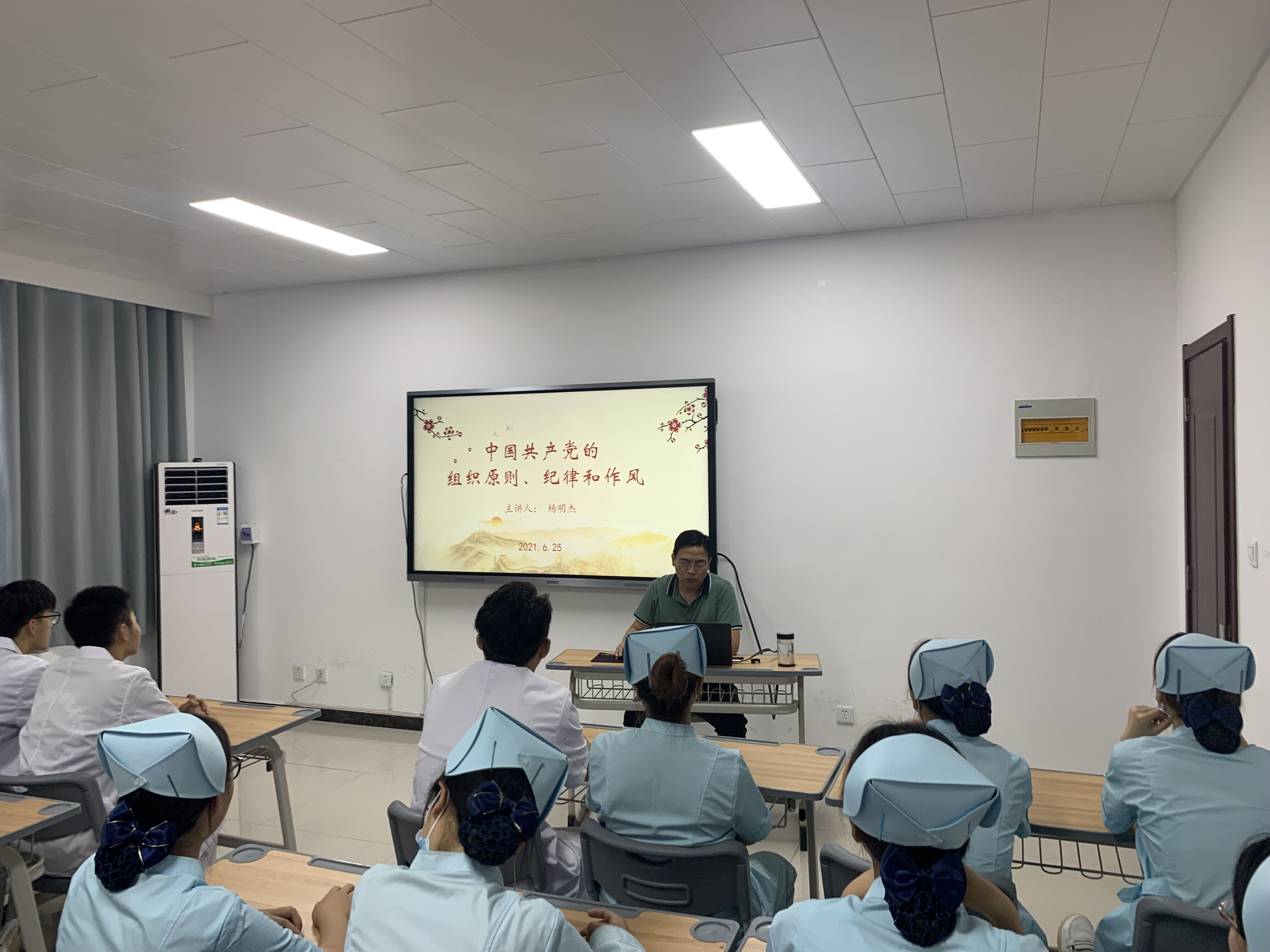 为进一步深化党史学习教育,密切干群联系,落实中共bat365在线中国官网登录入口委员会关于《bat365在线中国官网登录入口副处级干部联系学生班级实施办法》的通知要求,护理学院党总支书记杨明杰于2021年6月25日在A515为护理2016班做以《中国共产党的组织原则、纪律和作风》为主题的党课宣讲。