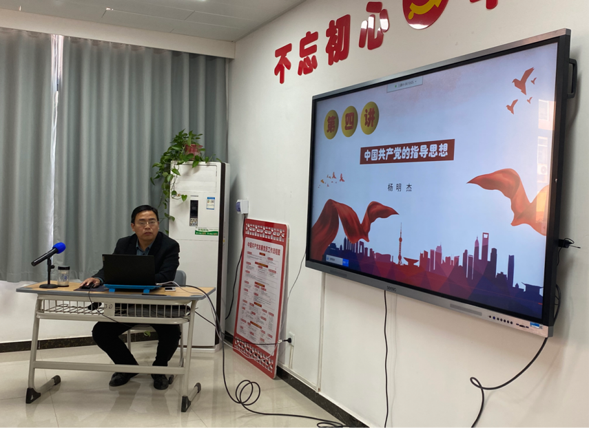 党课围绕中国共产党的指导思想展开,介绍了党的指导思想的基本内涵。“十月革命一声炮响,为我们送来了马克思主义”,杨明杰书记详细讲述了马克列主义、毛泽东思想、邓小平理论、“三个代表”重要思想、科学发展观、习近平新时代中国特色社会主义思想的主要内容和意义。 由习近平新时代中国特色社会主义思想引出八个明确和“十四个坚持”,他强调指出,这一思想是对马列宁主义、毛泽东思想、邓小平理论、“三个代表”重要思想、科学发展观的继承和发展,是马克思主义中国化的最新成果,是全党全国人民为实现中华民族伟大复兴而奋斗的行动指南。