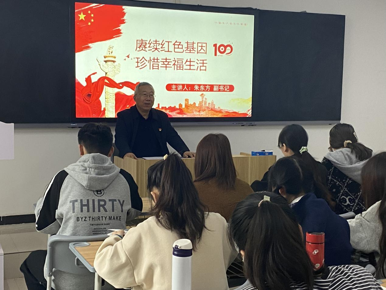 为深入学习贯彻习近平总书记在庆祝中国共产党成立100周年大会上的重要讲话精神,引导广大师生学史明理、学史增信、学史崇德、学史力行,11月2日,bat365官网党委副书记朱东方以“赓续红色基因,珍惜幸福生活”为主题,为护理学院学生上了一堂精彩的专题党课。