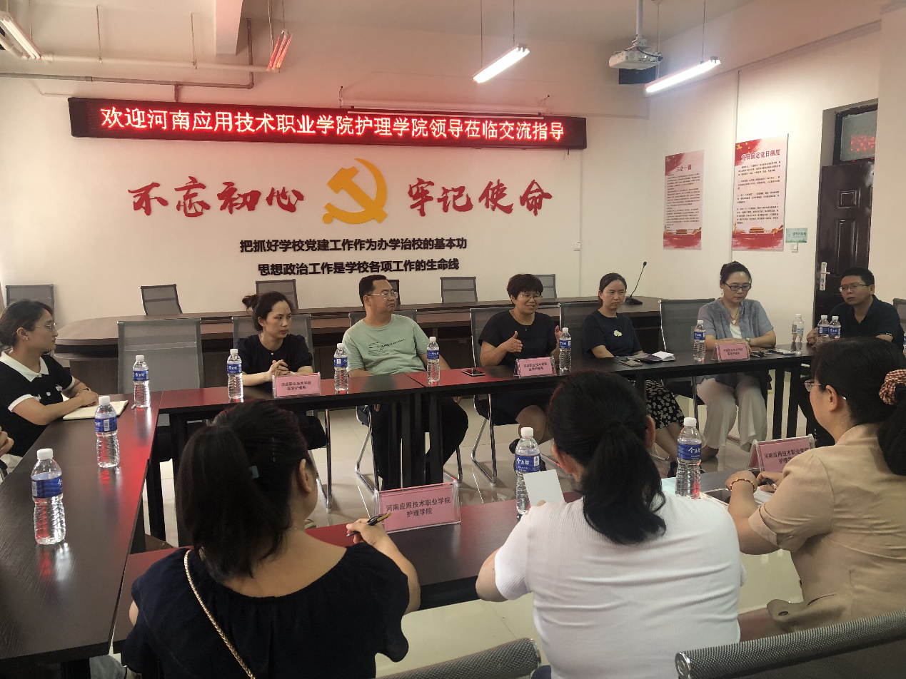 为借鉴学习兄弟院校的先进经验,进一步提升我院教学水平、完善实训室建设方案,8月4日,bat365在线中国官网登录入口护理学院院长王风云,带领学院教研室主任、骨干专业教师一行十二人,前往济源职业技术学院进行参观学习。此次参观受到了济职医学护理系周卫东主任、卢鑫书记等领导的热情接待。