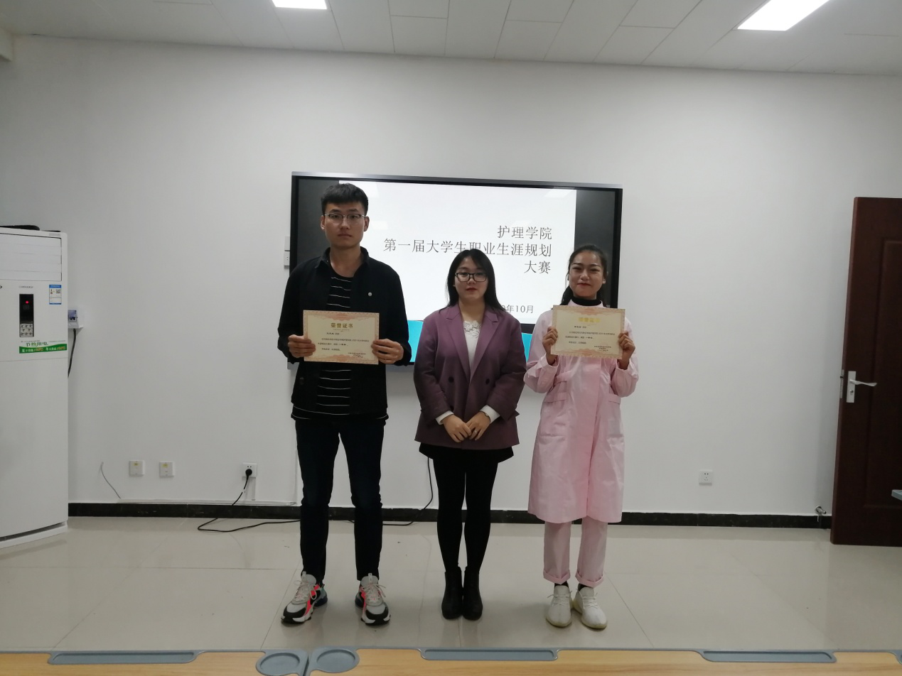在此公布本次职业生涯规划大赛成绩:一等奖:护理1909王亚威、助产1901董晓甜;二等奖:护理1904翟自萌、助产1903王新如、护理1902王勇,护理1913王强;三等奖:护理1909范泽岩、护理1919刘怡凡、护理1919尹雯雯、护理1901常媛媛、护理1910李星星。