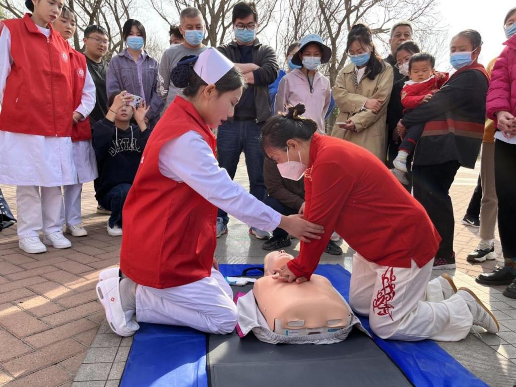 活动现场,志愿者们充分发挥自身专业优势,志愿者秉持“爱心、耐心、细心、责任心”为到场的市民测量血压、血糖,亲切的与大家交流,积极主动询问他们近期饮食、睡眠等状况,解答相关健康问题,同时宣传有关高血压、结核病等健康知识,讲解各种慢性病、以及防疫防控的注意事项,并给予提供切实可行的健康指导,同时现场演示了海姆立克急救法及心肺复苏等场景的应急演练,提升市民们的自救与互救意识,受到了就诊、咨询人们的纷纷点赞。