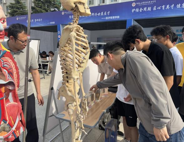 活动现场,各专业展区均设置互动体验区,参观师生可尝试心肺复苏及AED使用、拔罐、耳穴埋豆等技能,在“做中学”感受职业教育的魅力。同时,图文并茂的科普展板、逼真的教学模型及智能设备,将抽象知识转化为直观体验。学院还安排专业教师现场答疑,为大家提供健康咨询,真正实现“技能服务生活”。