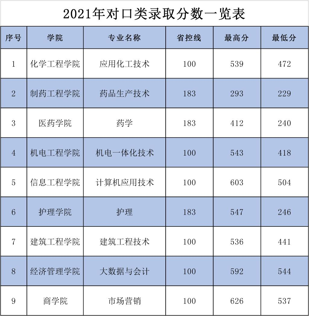 2021年对口类录取分数一览表